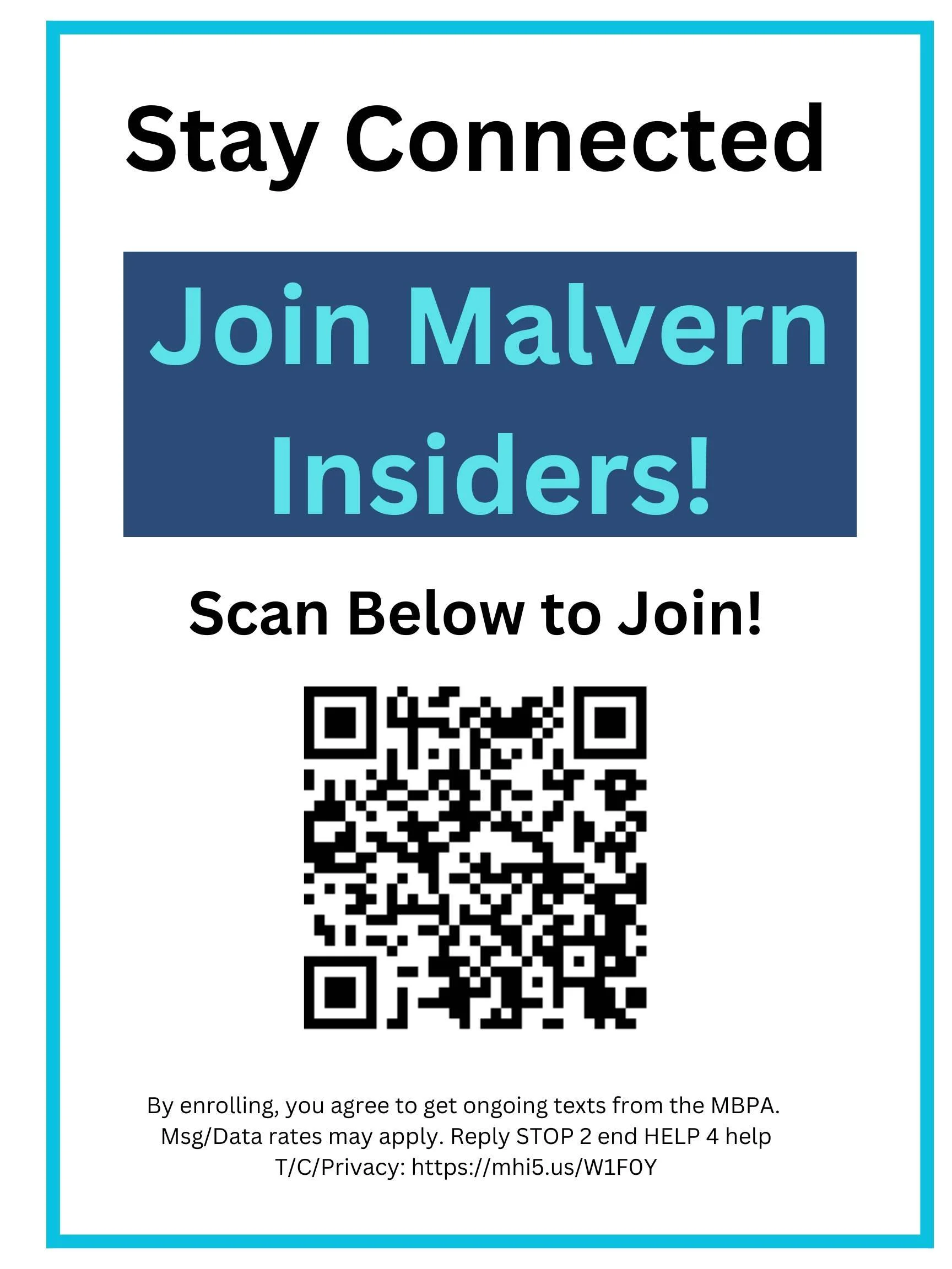 Join our local text communication program for the most up-to-date info and to get special insider-only deals at local merchants. Malvern Insiders delivers what’s happening around town, straight to your phone. Events. Openings. Local favorites. All in one place, just twice/month.